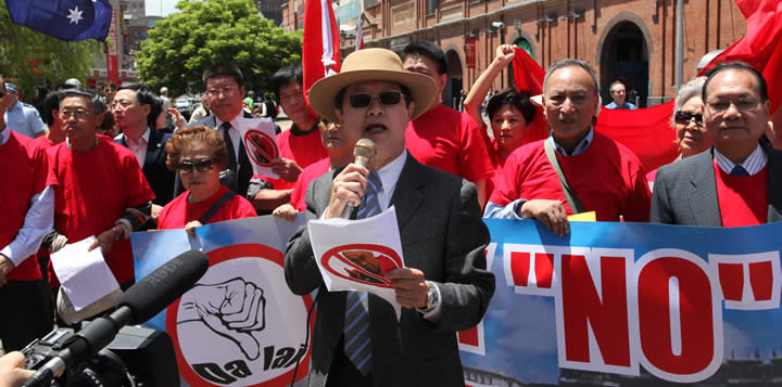 澳洲、悉尼统促会等团体集会反对达赖入境(图)