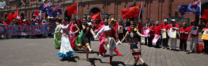 12月2日,由澳洲中国和平统一促进会、悉尼中国和平统一促进会等华人团体联合发起的“向达赖说不!反分裂大会”在悉尼举行,近三百人参加活动。悉尼文艺界代表在会上表演了西藏民族舞蹈,大家齐声高歌中华56民族是一家。