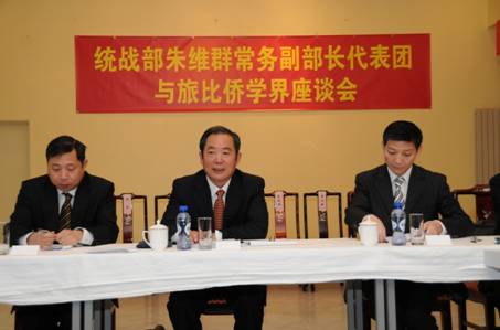 朱维群首先代表中央统战部、中华海外联谊会和中国和平统一促进会,以及全国政协副主席、中央统战部部长杜青林,向旅比华侨华人长期以来关心支持祖国发展,为推动中国和平统一大业,为促进中比人民友谊所做出的贡献表示感谢。