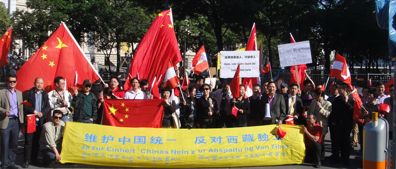 5月25、26日,达赖在维也纳城市大厅及维也纳大学演讲期间,奥地利中国和平统一促进会组织旅奥华侨华人在达赖活动场所外面举行反对“藏独”,抗议达赖访奥的示威集会。示威人群高举“维护中国统一,反对西藏独立”、“西藏属于中国”、“达赖微笑迷人行动害人”、“尊重事实,尊重中国”等横幅标语,抗议达赖窜访。