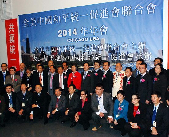 人民网11月2日讯 据《芝加哥华语论坛》消息,当地时间11月1日,全美中国和平统一促进会联合会2014年年会在芝加哥举行。来自大陆、台湾和美国的二百多位热心中国统一事业、致力于推动国家统一进程的来宾聚集一堂,“以国际视野探讨两岸关系,用中华文化凝聚两岸华人”,共商统一大计。中国驻芝加哥总领事赵卫平、副总领事王永,国务院侨办国外司副司长林旭、全美和统会执行会长林青、伊利诺州州长代表马静仪、华联会主席汪兴无等应邀出席。