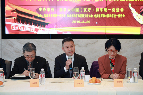 加拿大中国(友好)和平统一促进会会长王典奇讲话