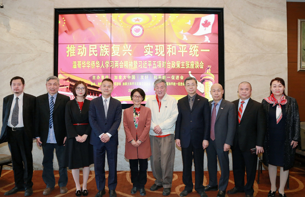3月29日,加拿大大温哥华地区华侨华人统促团体举行主题为“推动民族复兴实现和平统一”的座谈会,研习今年中国全国两会精神以及习近平在《告台湾同胞书》发表40周年纪念会上发表的重要讲话。