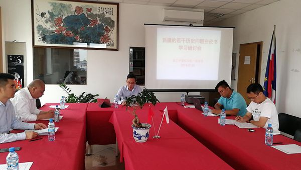 2019 年7 月23 日,波兰中国和平统一促进会第一常务副会长牟军召集并主持了《新疆的若干历史问题》白皮书学习研讨会。会上,牟军宣讲解读了白皮书,与会人员和各位会长积极参加讨论,踊跃发言。