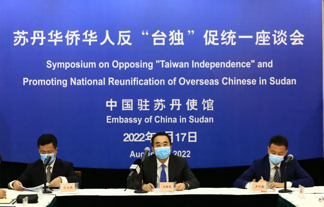 2022年8月17日,驻苏丹使馆举行苏丹华侨华人反“台独”促统一座谈会。马新民大使作总结讲话,苏丹中国和平统一促进会、旅苏华侨华人、中资机构代表20余人与会。