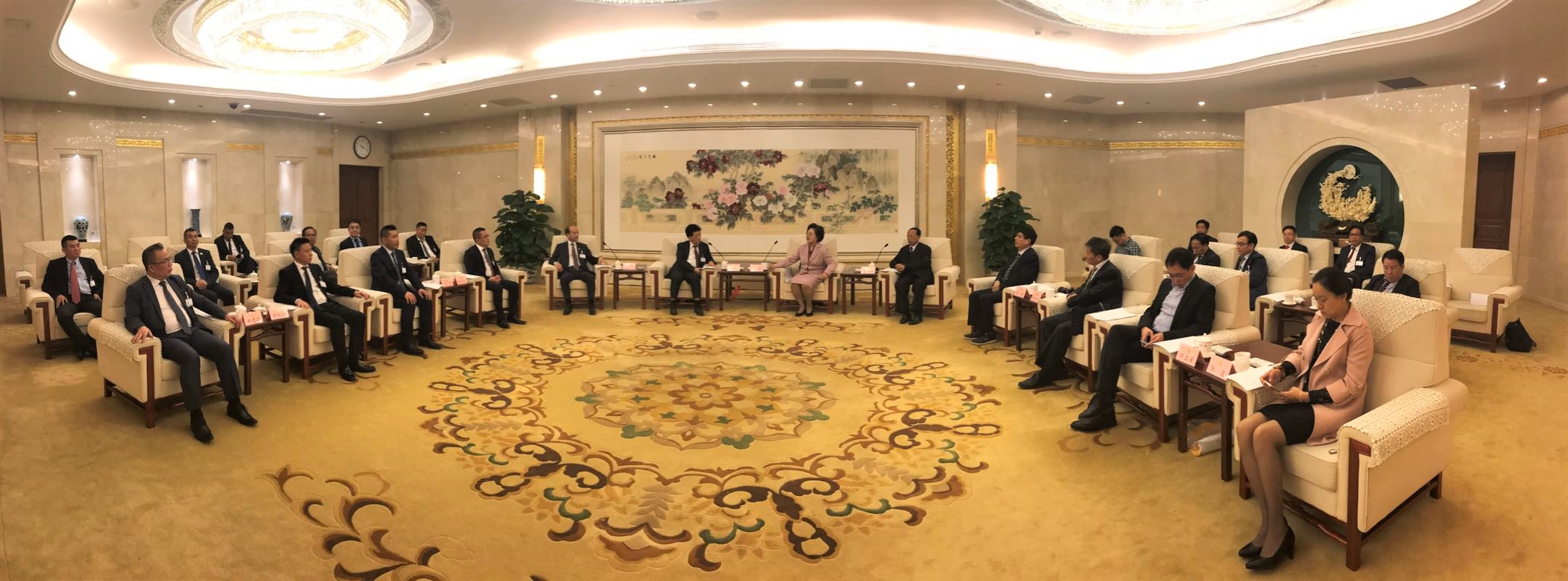 5月5日,全国政协副主席、台盟中央主席、中国和平统一促进会副会长林文漪在北京会见由法国中国和平统一促进会执行会长王加清率领的代表团一行20人。