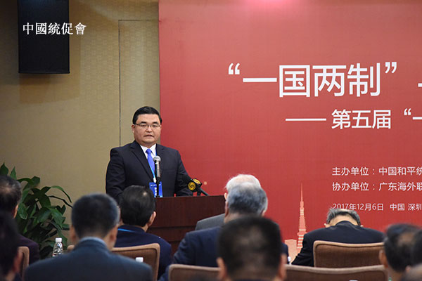 12月6日,由中国和平统一促进会主办的第五届“一国两制”理论与实践研讨会在深圳开幕。来自大陆和香港、澳门、台湾地区的40余位专家学者出席开幕式,并围绕 “习近平关于‘一国两制’重要思想研究”、“‘一国两制’与中华民族伟大复兴”等议题进行深入研讨。