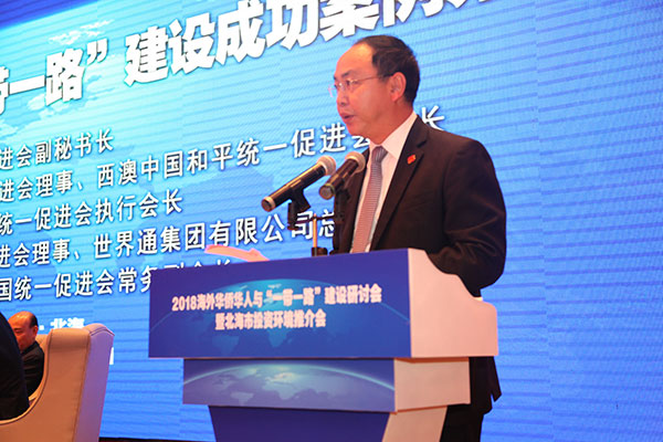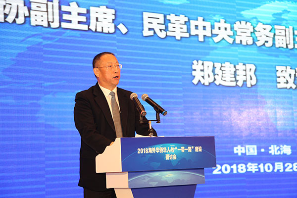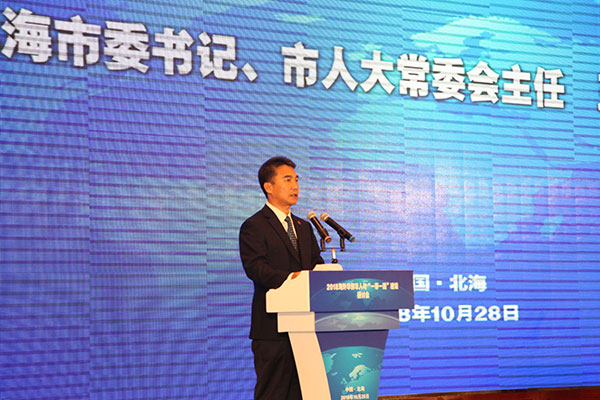 由中国和平统一促进会、中国人民政治协商会议广西壮族自治区委员会共同主办,北海市人民政府、中国中小商业企业协会承办,广西中国和平统一促进会、北京海上丝绸之路经济研究院协办的“2018海外华侨华人与‘一带一路’建设研讨会”于10月28日在广西北海举行。海外统促会组织代表、国内企业家和专家学者等300余人齐聚一堂,聚焦“一带一路”倡议,共商融入“一带一路”、助推南向通道建设大计。