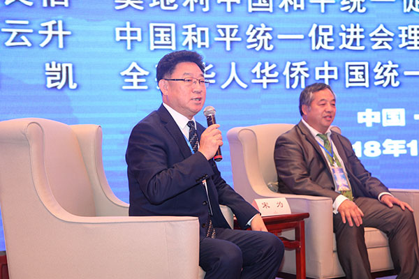 中国和平统一促进会副秘书长宋为主持主题讨论环节