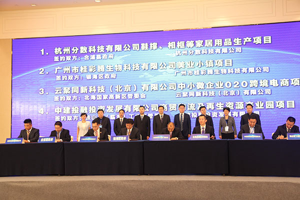 在项目对接环节,北海市市长蔡锦军发表题为《发挥北海海丝始发港优势,主动融入南向通道建设》的演讲。北海市副市长卓英子作北海市投资项目推介。北海市人民政府与中国中小商业企业协会签署了战略合作协议,五个企业与北海市相关区县分别签署了合作协议,涉及金额近12亿元。