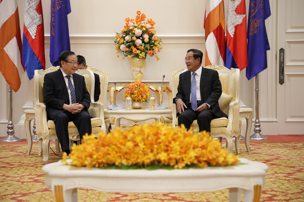 6月19日上午,万钢在金边分别会见了柬首相洪森、参议院第二副主席迪翁,就中柬友好关系、科技合作及推动“一带一路”建设等深入交换了意见。