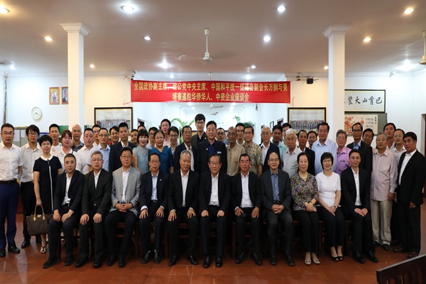6月19日下午、6月20日下午,万钢分别在金边、暹粒与当地侨胞座谈,高度评价在柬华侨华人为推动柬埔寨经济社会建设、深化中柬友好、促进中国和平统一等作出的重要贡献。他希望,在柬华侨华人充分发挥自身优势,为共建“一带一路”、促进中柬友好、推进中国和平统一进程作出更大的贡献。