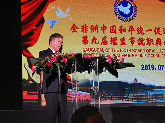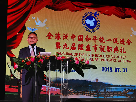 中华海外联谊会副秘书长仇昱、中国驻南非大使林松添、全非洲统促会第八届会长李新铸在典礼上致辞。新任会长徐长斌发表就职感言。