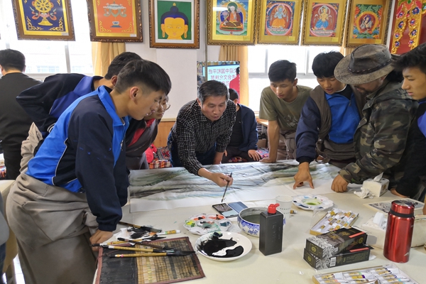 指导藏族师生绘画技法
