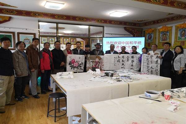 文化扶贫采风团深入甘肃甘南藏族自治州,凸显弘扬中国传统绘画艺术,深入乡镇和学校,向贫困地区群众送温暖,向当地师生传授中国传统绘画技法。活动期间,书画家在海拔3000多米的甘肃藏区走访贫困慰问贫困家庭,参观藏区新农村建设情况,考察了藏区环境保护情况,在合作市高级中学向当地师生现场传授和指导传统文化艺术知识与技巧,并将创作作品捐赠给当地学校,激励广大藏族同学进一步增强中华民族共同体意识,热爱中华民族传统文化,为继承和弘扬中华民族传统文化而努力。文化扶贫采风活动聚焦贫困地区、民族地区,将传统采风活动与文化扶贫、助学活动相结合,针对性强,实效性好,当地同学师生反响热烈,得到了当地有关部门及学校的广泛赞誉。