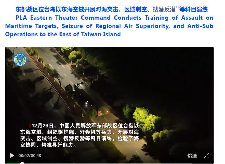 东部战区发布视频,含英文公告。(图片来源:东部战区)