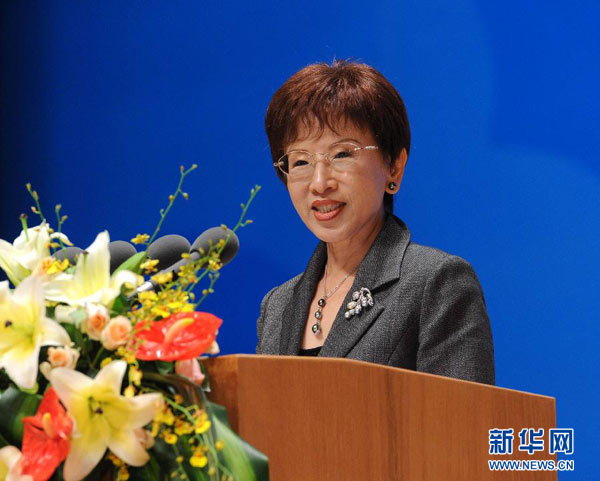 6月17日,中国国民党副主席洪秀柱在厦门举行的第四届海峡论坛大会上致辞。 新华社记者 饶爱民 摄
