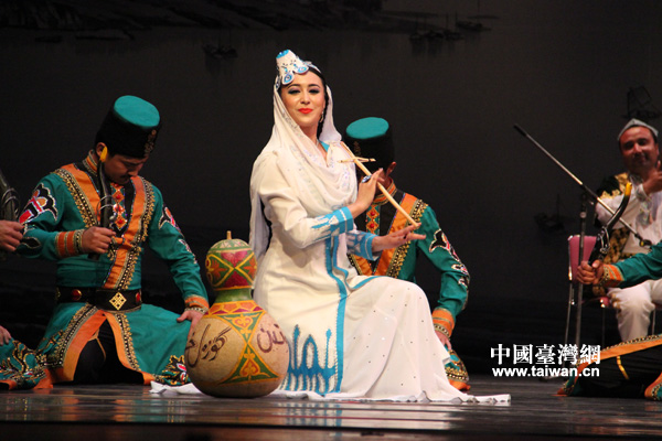 中国台湾网4月11日台南消息 从和田到乌鲁木齐到北京再到台湾,历经近一万公里的路途,13位新疆表演艺术家来到宝岛台湾,为当地观众呈现了独特的少数民族特色,更带去了精致的新疆风味。作为中华民族特有的少数民族文化特色之一,新疆歌舞表演在台湾受到了热烈的欢迎。