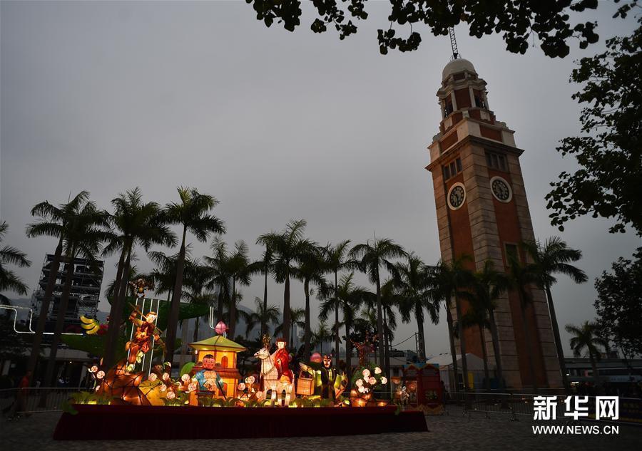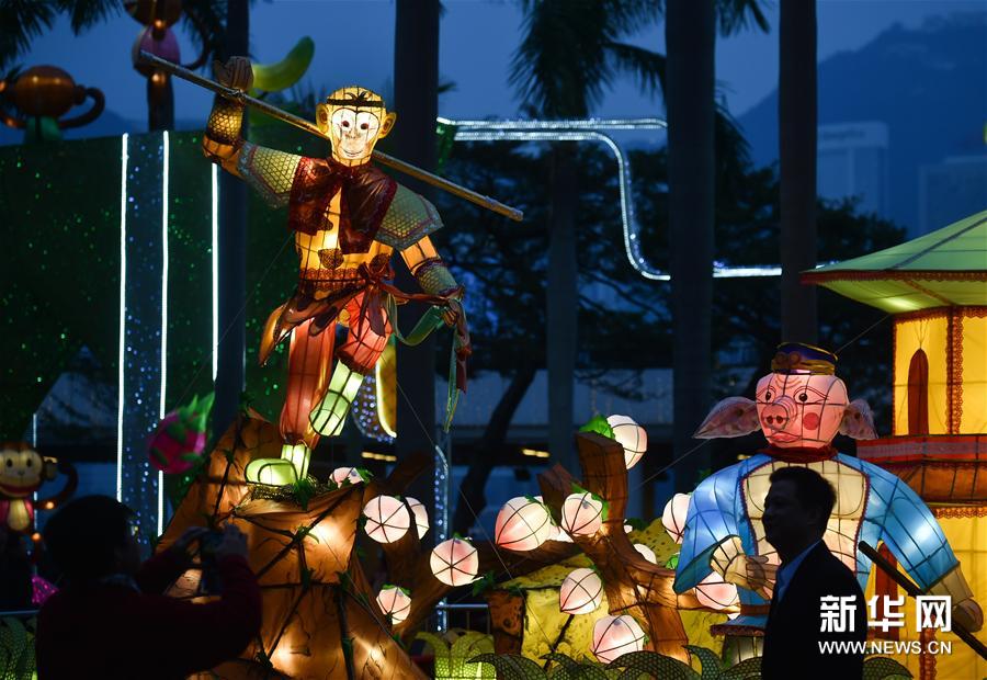 今年的彩灯晚会可谓看头十足,为配合猴年,尖沙咀彩灯会以《西游记》为主题,重现唐三藏、孙悟空、猪八戒及沙僧师徒西行求法场景,这组作品是由香港夏中建师傅扎作,名为《金猴献瑞贺元宵》,夏中建说,这组彩灯全由人手扎作,用了十多天时间。当中,四师徒的脸谱最特别,唐三藏的脸谱运用了素描绘法、孙悟空的脸谱糅合京剧元素、猪八戒的脸谱神态可爱、沙僧的脸谱选用了水墨画绘法。