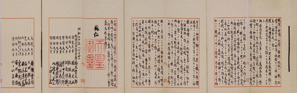 1945年8月15日中午,“社团法人台湾放送协会”所辖台北、台中、台南、嘉义、花莲放送局(按,广播局)与“日本放送协会(NHK)”同步广播日本昭和天皇裕仁于8月14日录制的广播讲话《终战诏书》(图一),宣布日本接受《波茨坦宣言》、无条件投降。