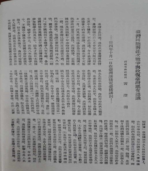 据档案记载,中国官方先后于1945年11月10日、16日、18日、20日和27日正式接收台北、台中、台南、嘉义和花莲电台。然而,1945年10月1日,黄澄渊已在“台湾广播电台播讲”《台湾同胞对此次战争与收复台湾应有认识》(图五)。我想,在“正式接收”之前应该有官方人员介入做“非正式”接收也。