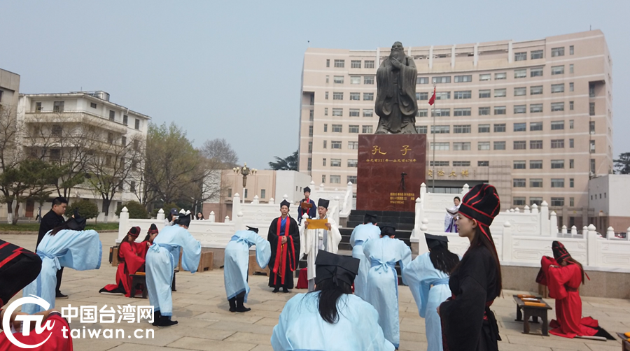 两岸青年在曲阜师范学院参加敬师礼。(中国台湾网 曹帅兵 摄)