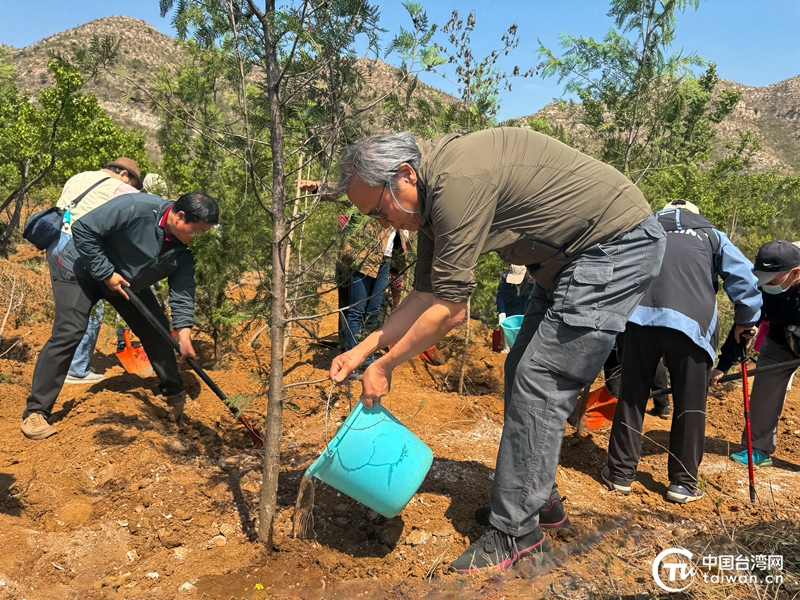 台胞认真浇灌树苗。(中国台湾网记者 刘佳辰 摄)