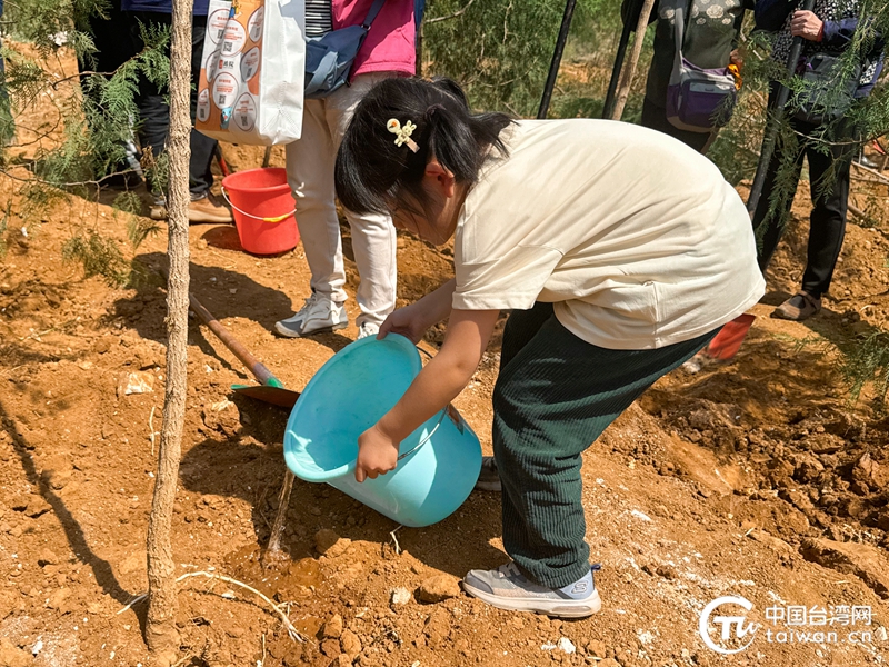 台胞亲属独立浇灌树苗。(中国台湾网记者 刘佳辰 摄)