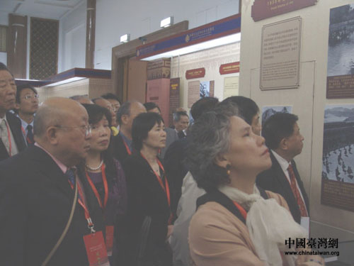 4月25日下午,中国和平统一促进会第八届海外统促会会长会的与会代表,参观西藏民主改革50年大型展览。(中国台湾网 杨丽 摄)