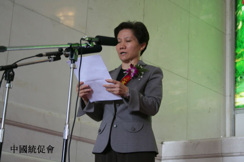 中国和平统一促进会理事、著名画家李燕在开幕式上发言